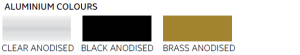 Clear anodised, black anodised, brass anodised